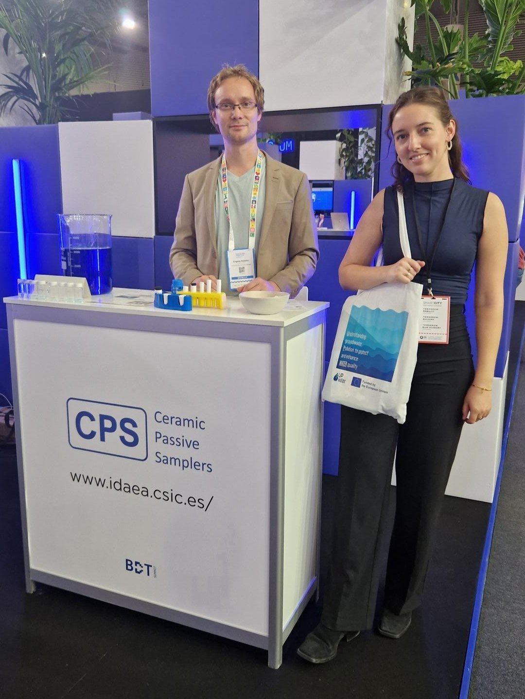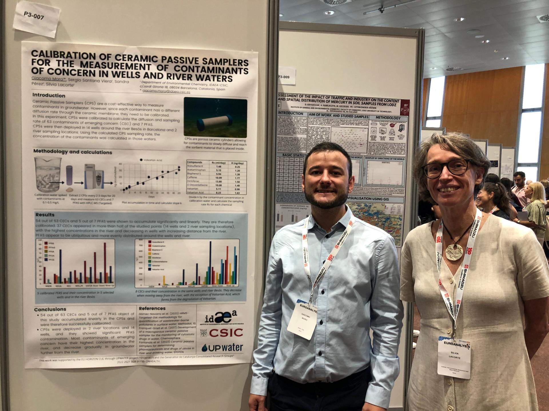 Yesterday, UPWATER presented a poster on the calibration of Ceramic Passive Samplers for the measurement of 54 contaminants and 5 PFAS in river- and groundwater. We showed the presence and distribution of 8 contaminants and 5 PFAS in the river Besòs (Barcelona) and the surrounding wells. Right: Giacomo Moro and Silvia Lacorte at the Euroanalysis Congress |